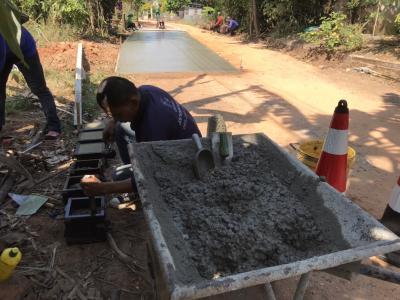 ควบคุมงานก่อสร้างถนนคอนกรีตเสริมเหล็ก บ้านหนองตะแบก ม.5